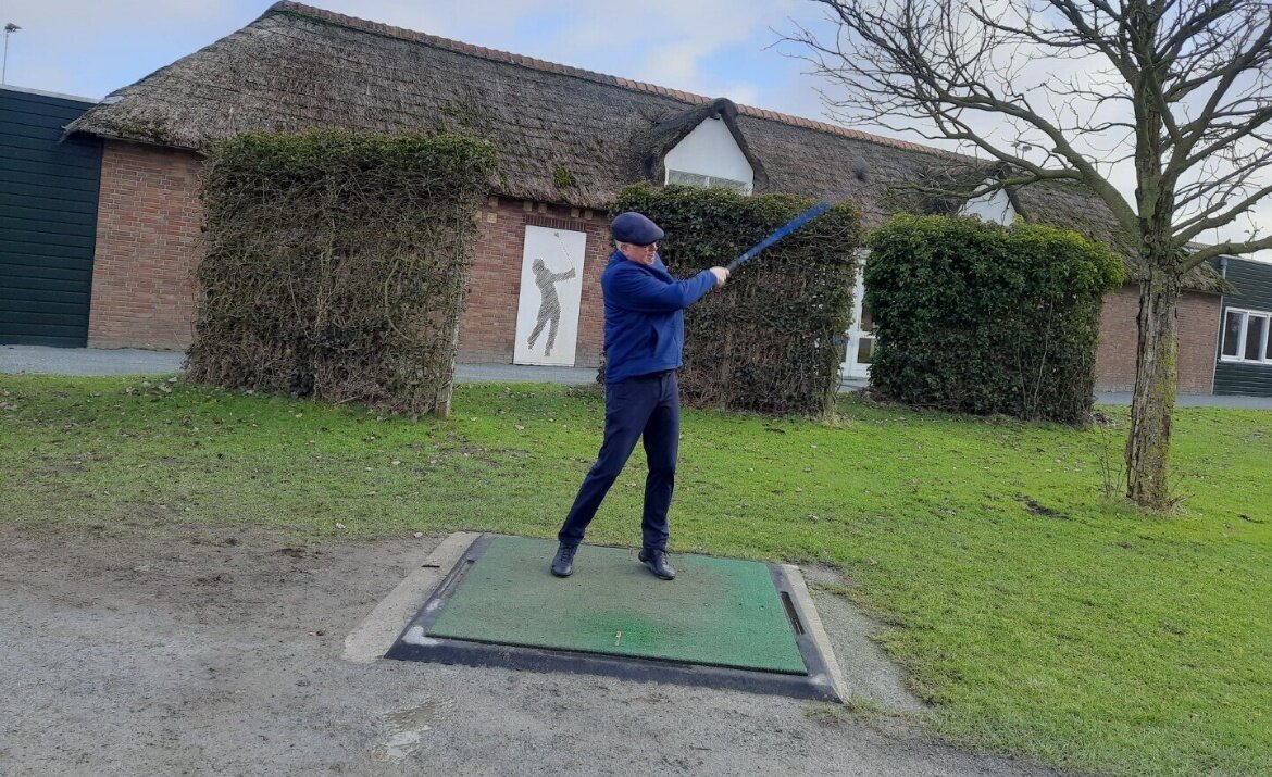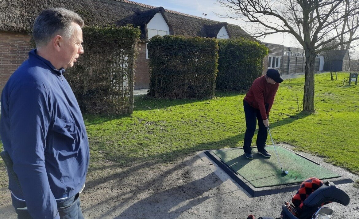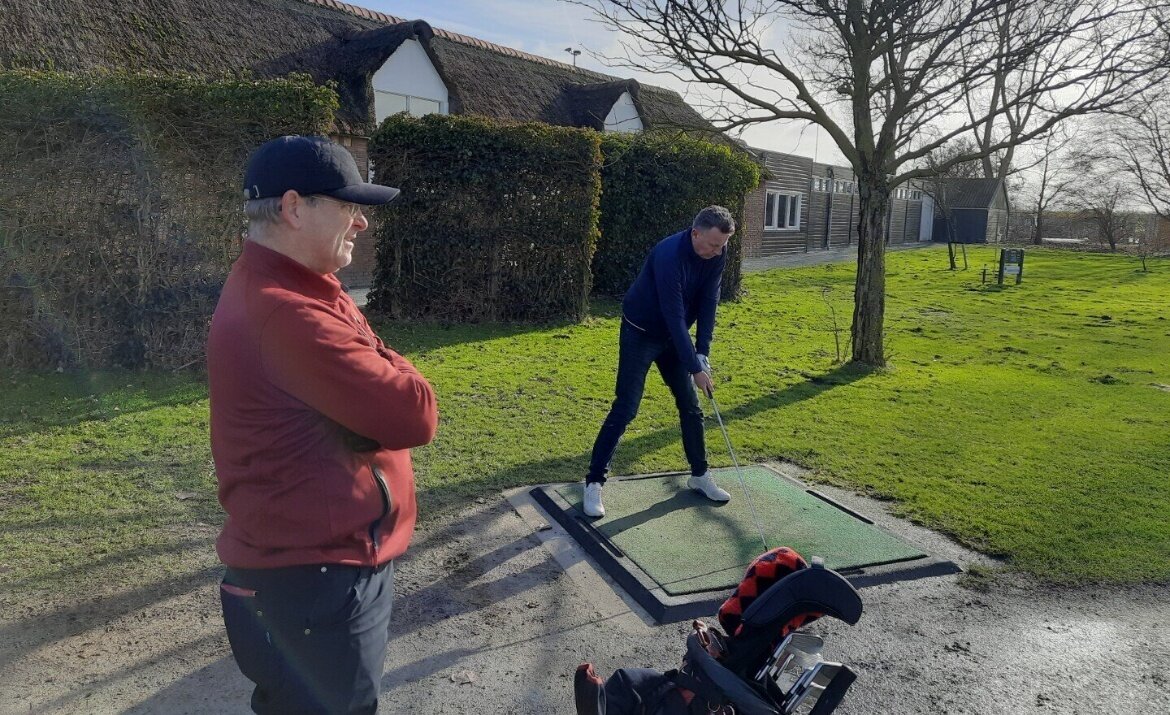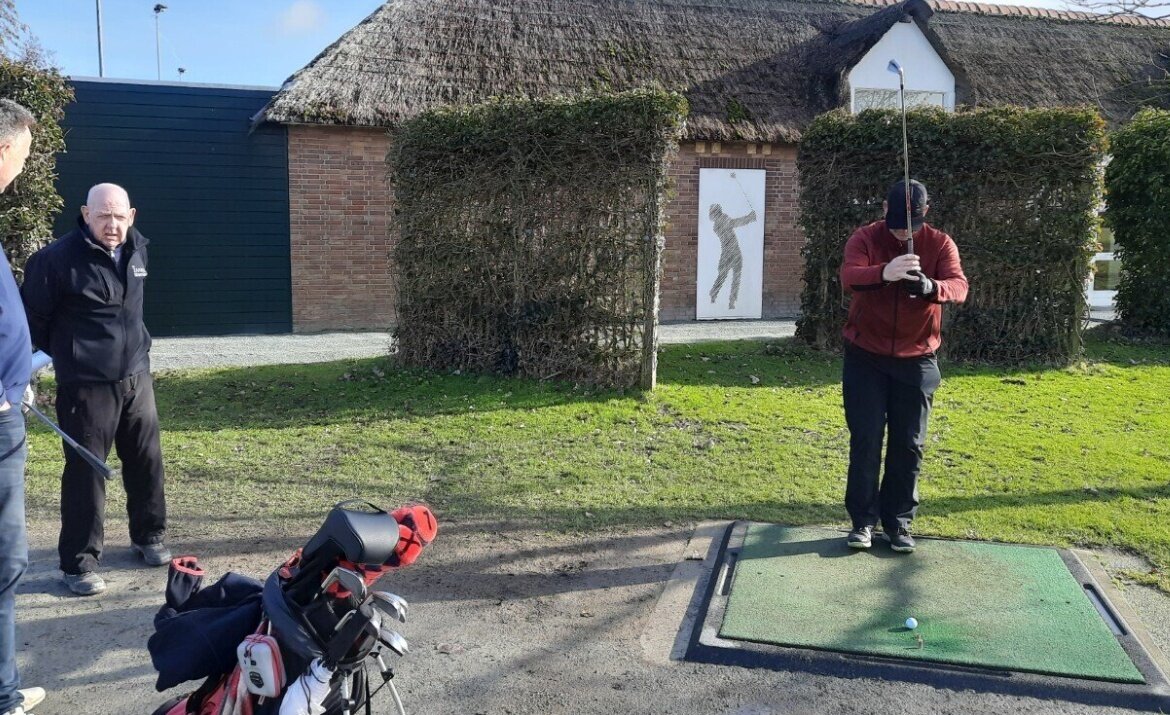 Het clubhuis wordt onder handen genomen en dus was de ontvangst bij de driving range.