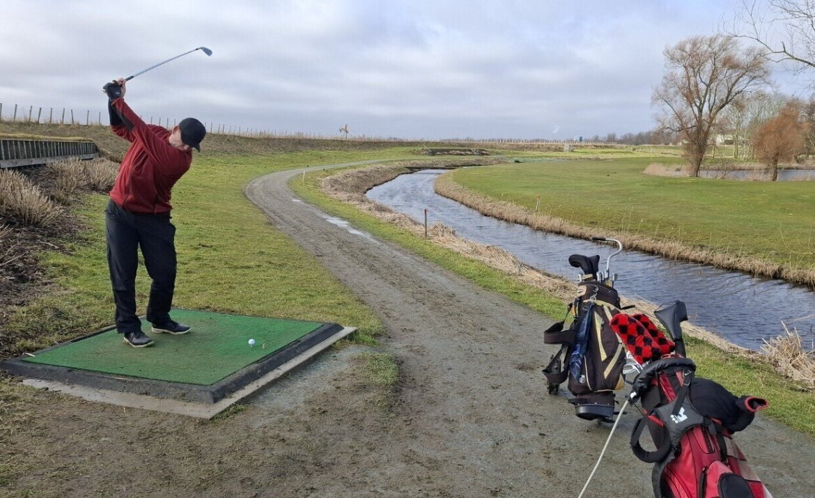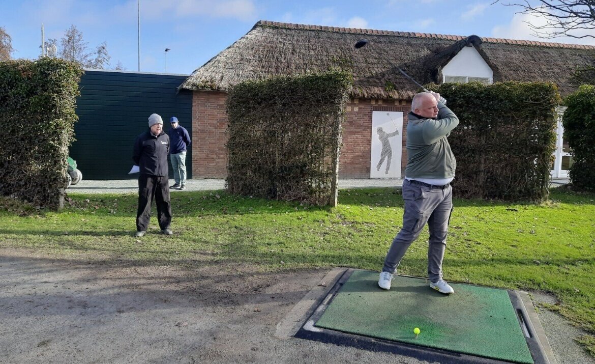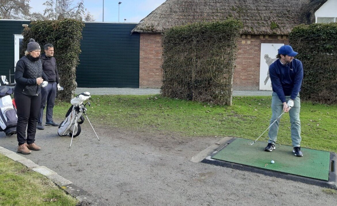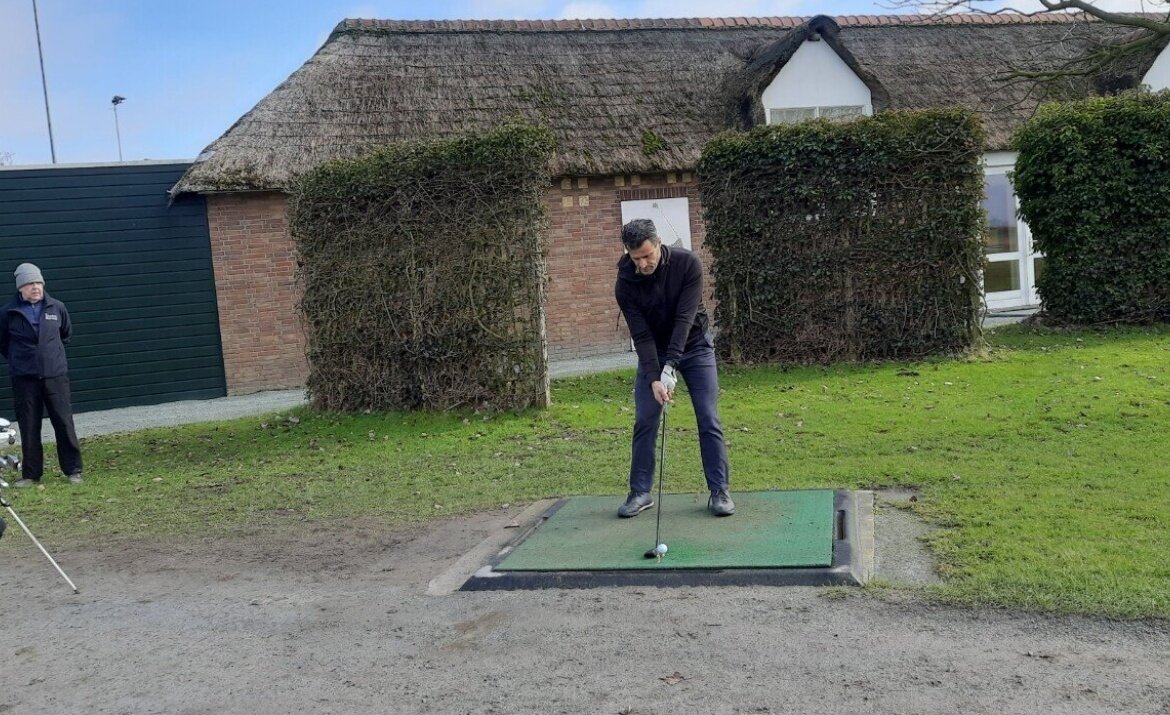 Het clubhuis wordt onder handen genomen en dus was de ontvangst bij de driving range.