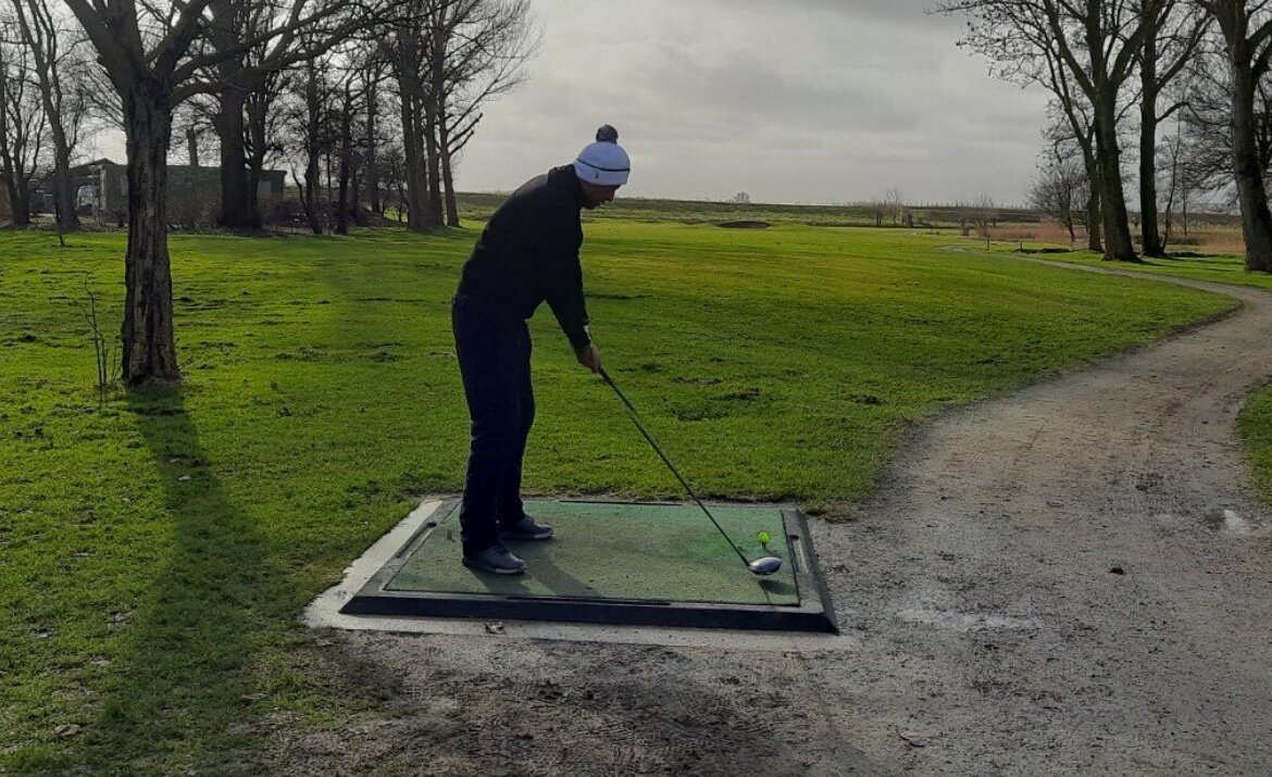 Om 11 uur gingen we de baan in. De drassige fairways maakte de baan lang ook al stonden de afslagplaatsen, de wintermatten, voor de heren naar voren. Voor de dames dan meestal weer naar achteren.